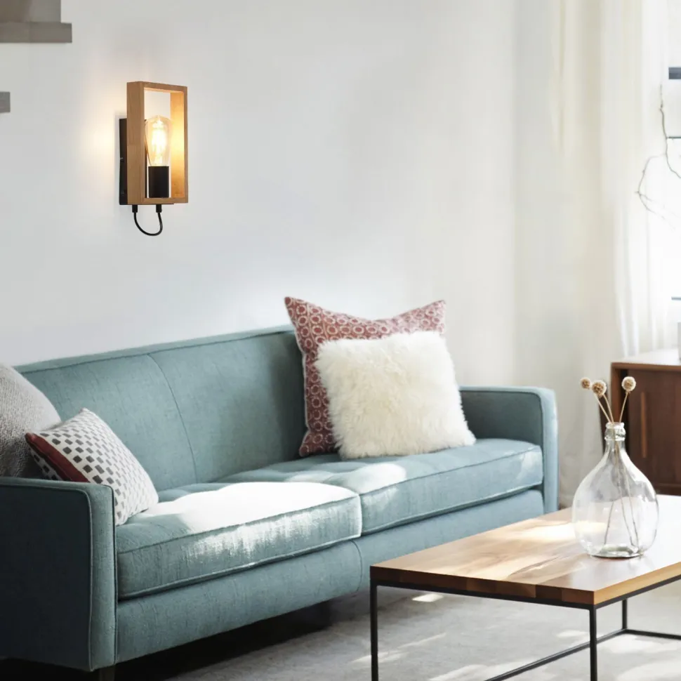 Retro Wandleuchte aus Metall und Holz