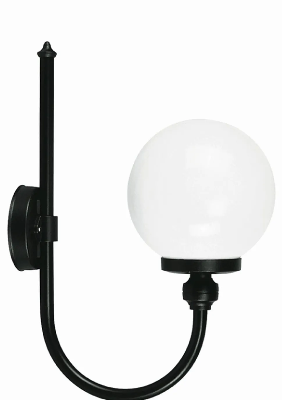 Elegante Wandlampe für Außen mit Kugelschirm in zeitlosem Schwarz Weiß