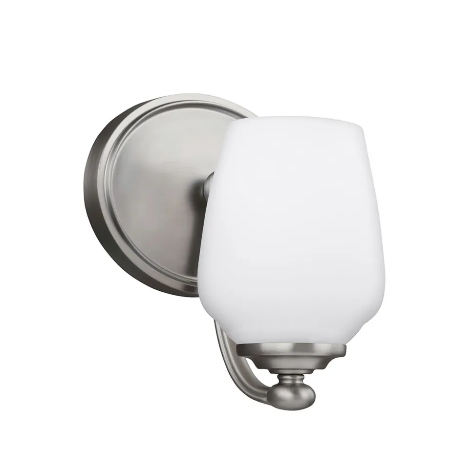 Das Licht wird durch den satinierten Glas Lampenschirm blendarm gestreut, was eine angenehme Beleuchtung erlaubt – ideal neben dem Spiegel