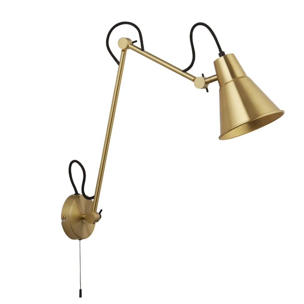 Verstellbare Wandlampe mit Schalter und Gelenken in Messing