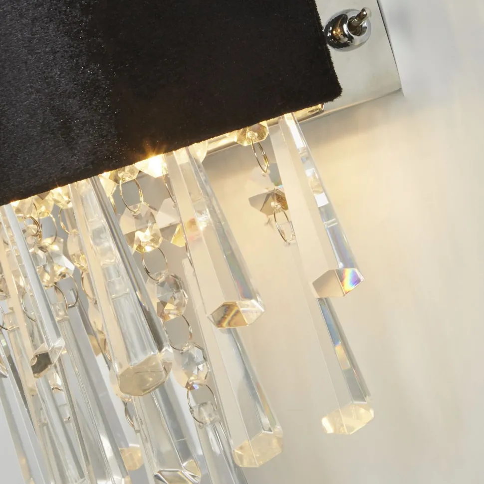 Die funkelnden Glas Kristalle sorgen für einen dekorativen Look und verleihen der Wandlampe einen edlen Charakter – ein absolutes Highlight in jedem Raum