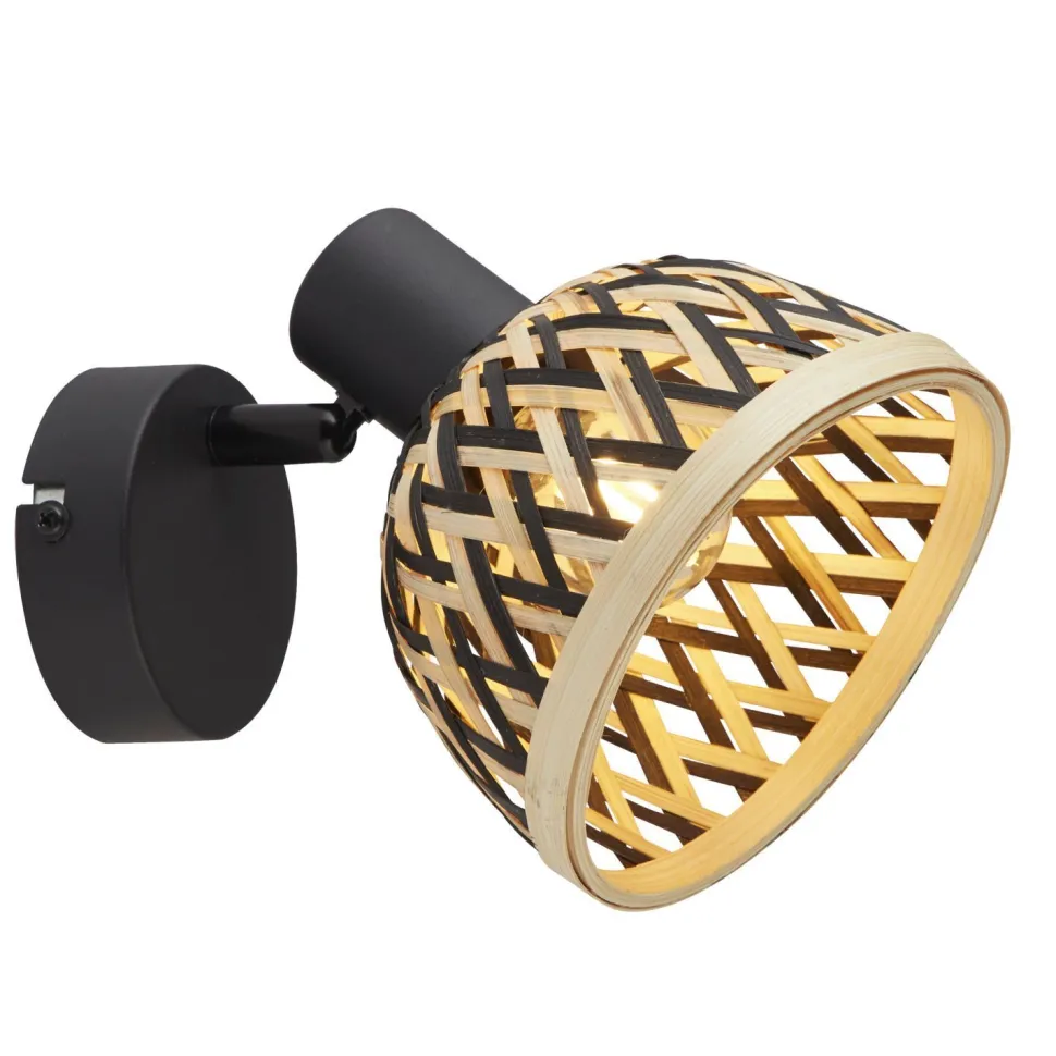 Verstellbarer Wandspot mit dekorativem Lampenschirm aus Bambus Geflecht