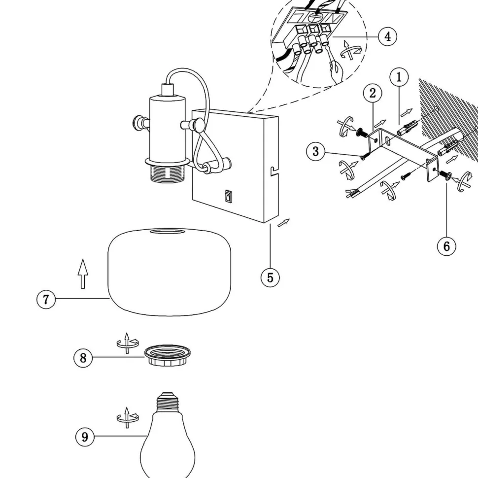 Wandspot blendarm in Schwarz Bernstein E27 H:16 cm