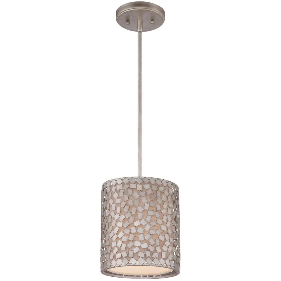 Kleine Plättchen in Silber antik bilden einen zweiten Schirm, der die Deckenlampe zu einem Hingucker macht