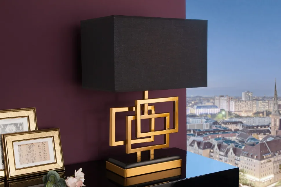 Moderne Tischleuchte aus Polyester und Stoff in Gold und Schwarz