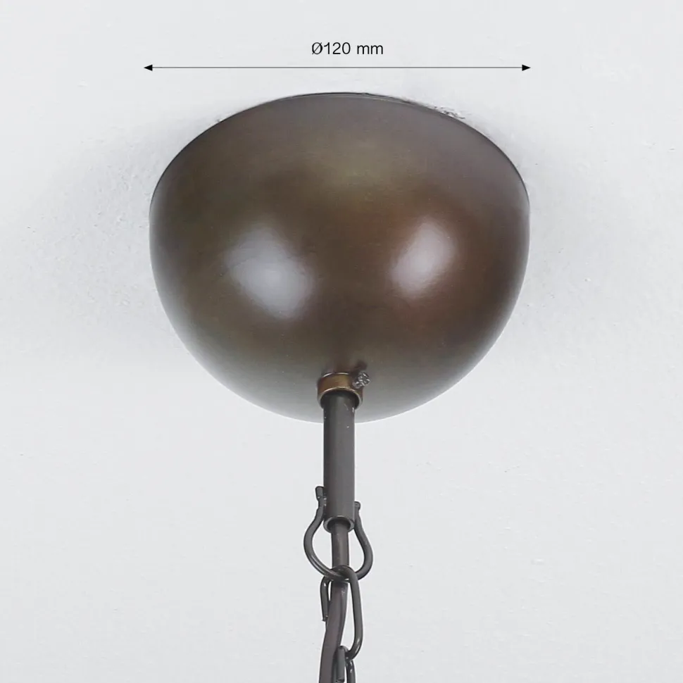 Maße: Schirm: Durchmesser: 500mm, Höhe: 250mm | Deckenhalterung: Durchmesser: 120mm | Kette: Länge: max. 1050mm