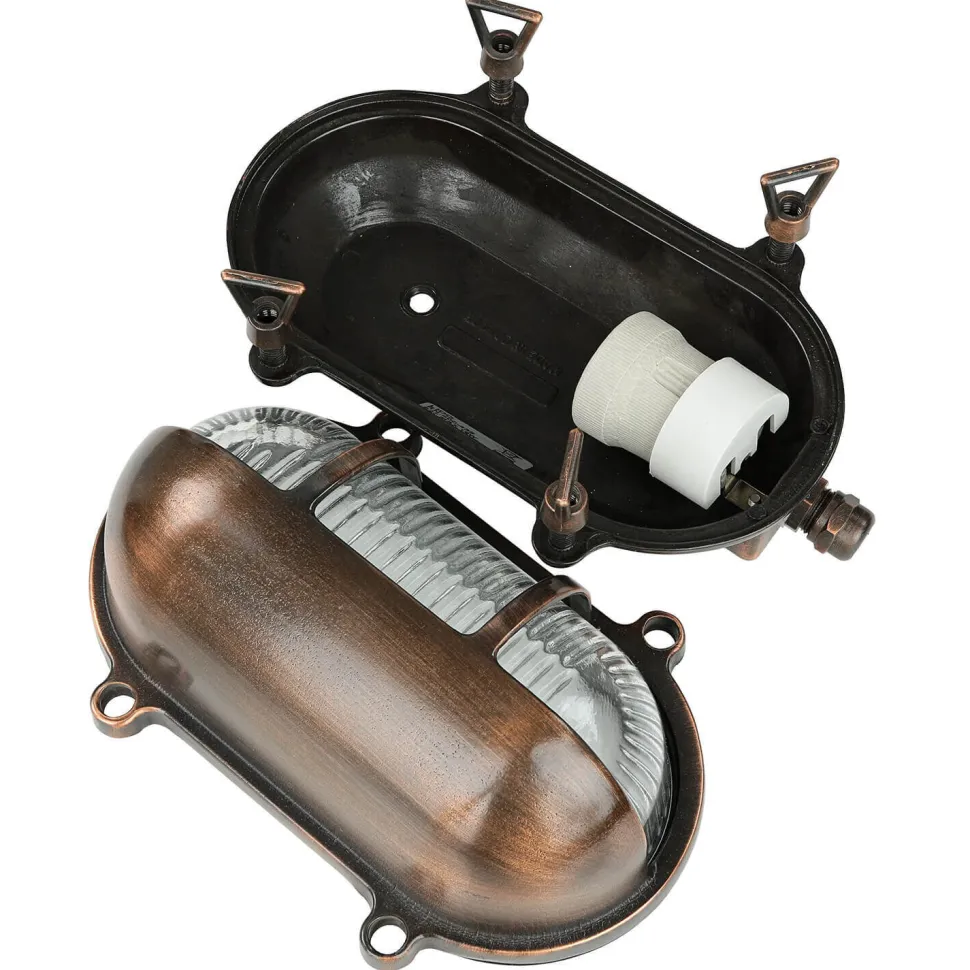 Maritime Außenwandlampe aus massivem Messing im Stil eines antiken Bullauges