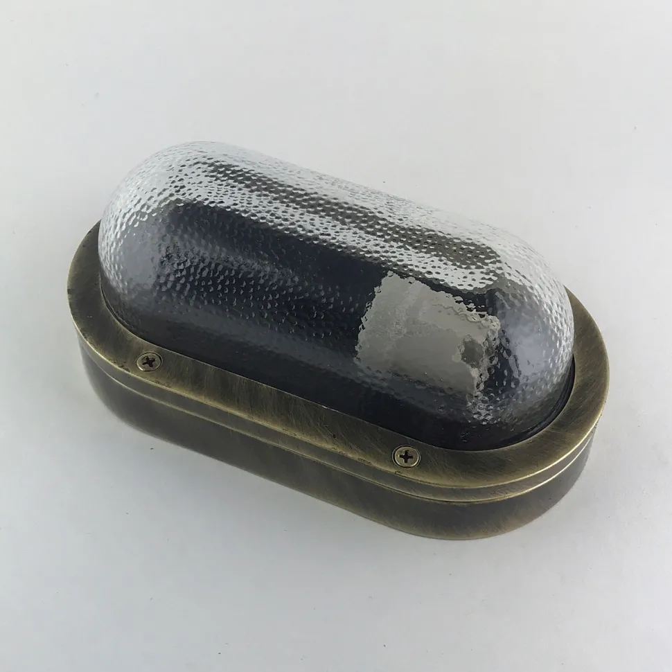 Maritime Außenwandleuchte aus massivem Messing und kunstvollem Riffelglas in Antik: ideal als Haustür Lampe, Terrassenbeleuchtung, Balkonlampe, Carport Beleuchtung und Garagenlampe
