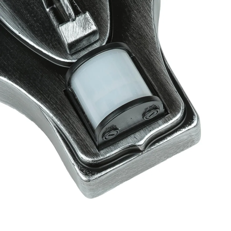 Elegante Außenleuchte mit Bewegungsmelder in elegantem Schwarz mit silberner Patina
