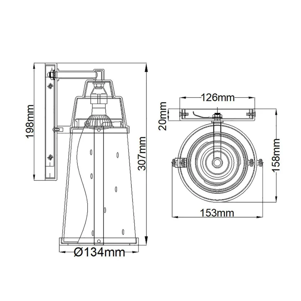 | Maße: | Breite: 153 mm | Höhe: 307 mm | Tiefe: 158 mm | Durchmesser Schirm: 153 mm |