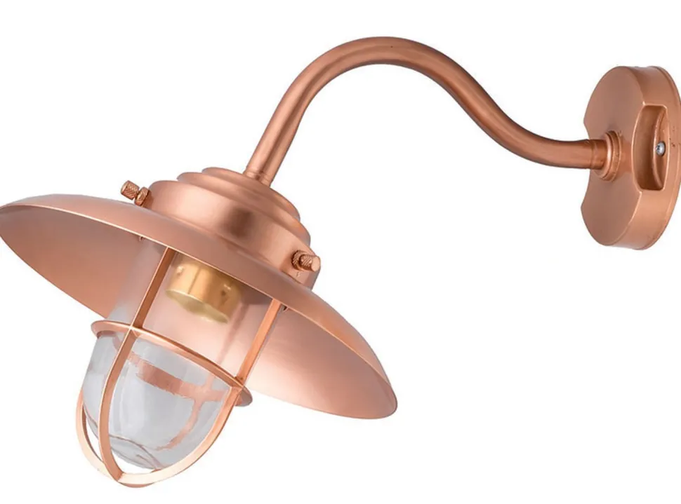 Elegante Außenwandlampe aus massivem Messing und Glas in Kupfer