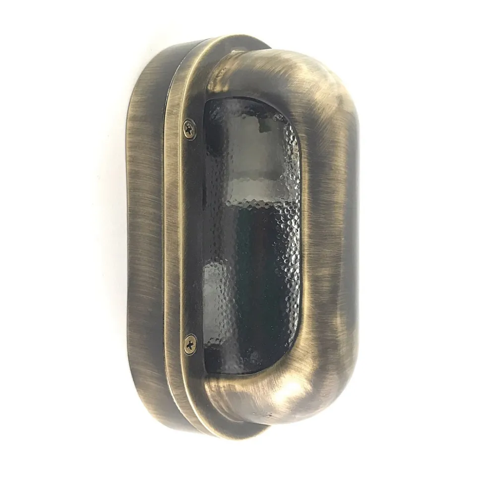 Maritime Außenwandleuchte aus massivem Messing und kunstvollem Glas in Antik: ideal als Haustür Lampe, Terrassenbeleuchtung, Balkon Lampe, Carport Beleuchtung und Garagenlampe