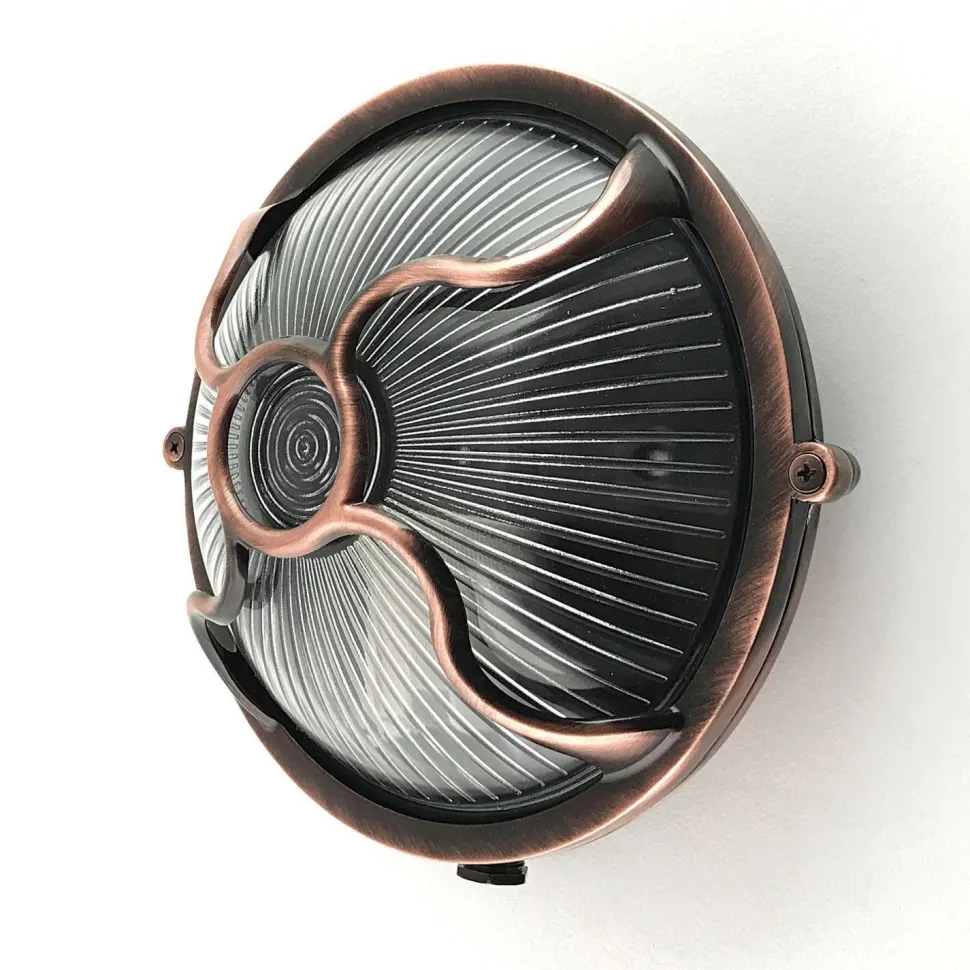 Maritime außen Wandlampe aus massivem Messing und kunstvollem Riffelglas in Kupfer antik: ideal als Haustür Lampe, Terrassenbeleuchtung, Balkon Lampe, Carport Beleuchtung und Garagenlampe
