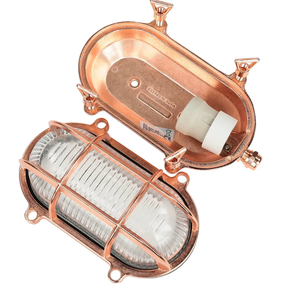 Die Außenleuchte ist ideal für Küstenregionen und Gegenden mit hoher Luftfeuchtigkeit: Messing ist absolut rostfrei und der Schirm hat eine zusätzliche Dichtung, sodass das Leuchtmittel besonders geschützt ist
