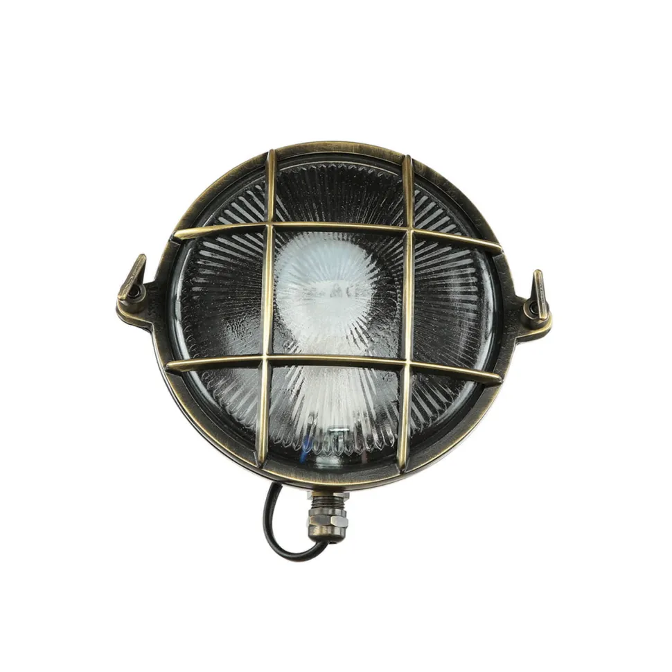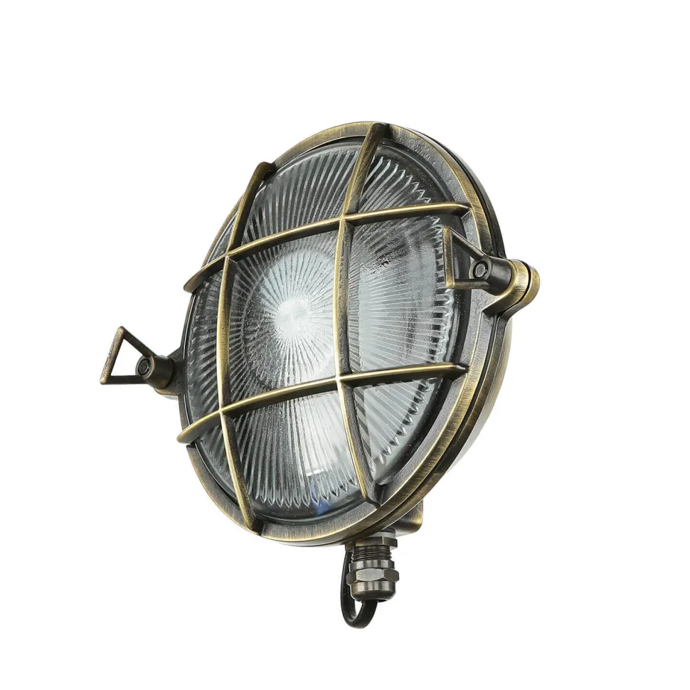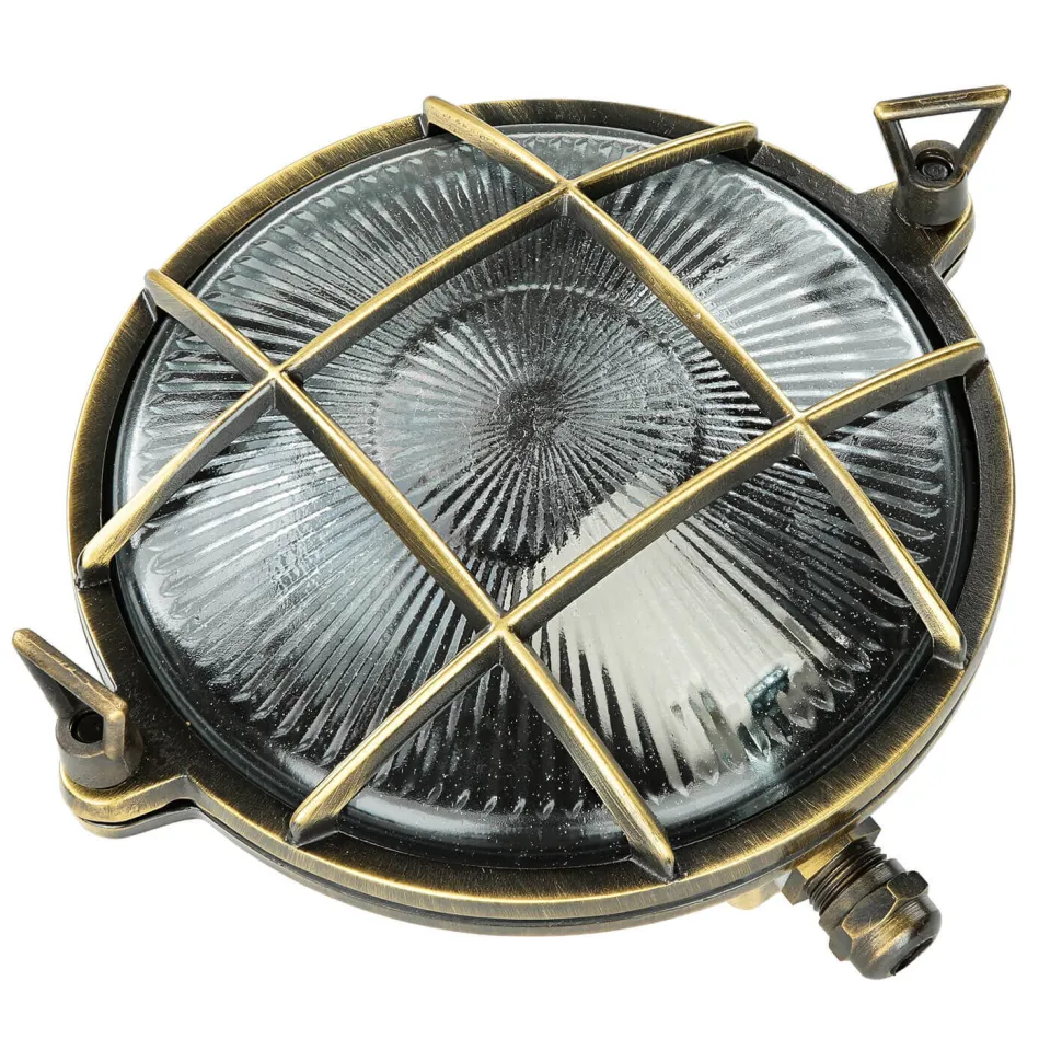 Maritime Außenwandlampe aus massivem Messing im Stil eines antiken Bullauges