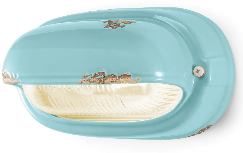Die Keramikleuchte ist alten Schiffslampen nachempfunden und setzt einen außergewöhnlichen Akzent in Wohnzimmer, Flur und Bad