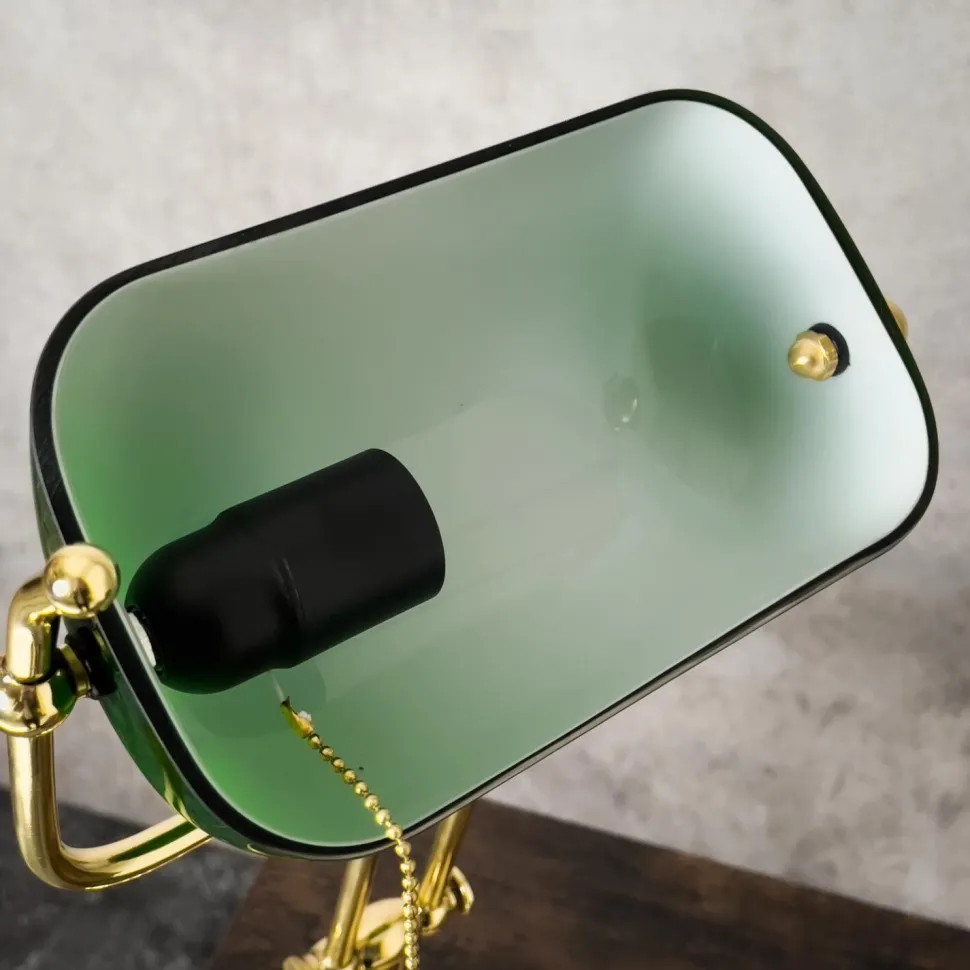 Edle Bankerlampe mit Zugschalter aus massivem Messing und Glas