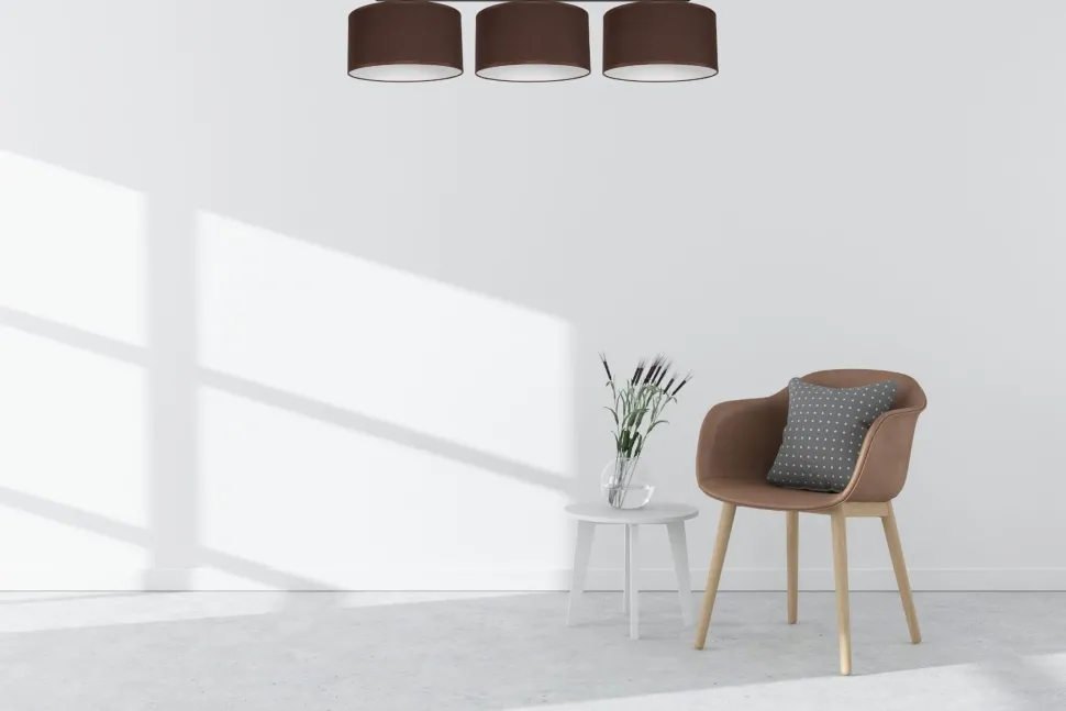 Die braunen Stoffschirme sind dekorativ und streuen das Licht diffus und blendarm in den Raum