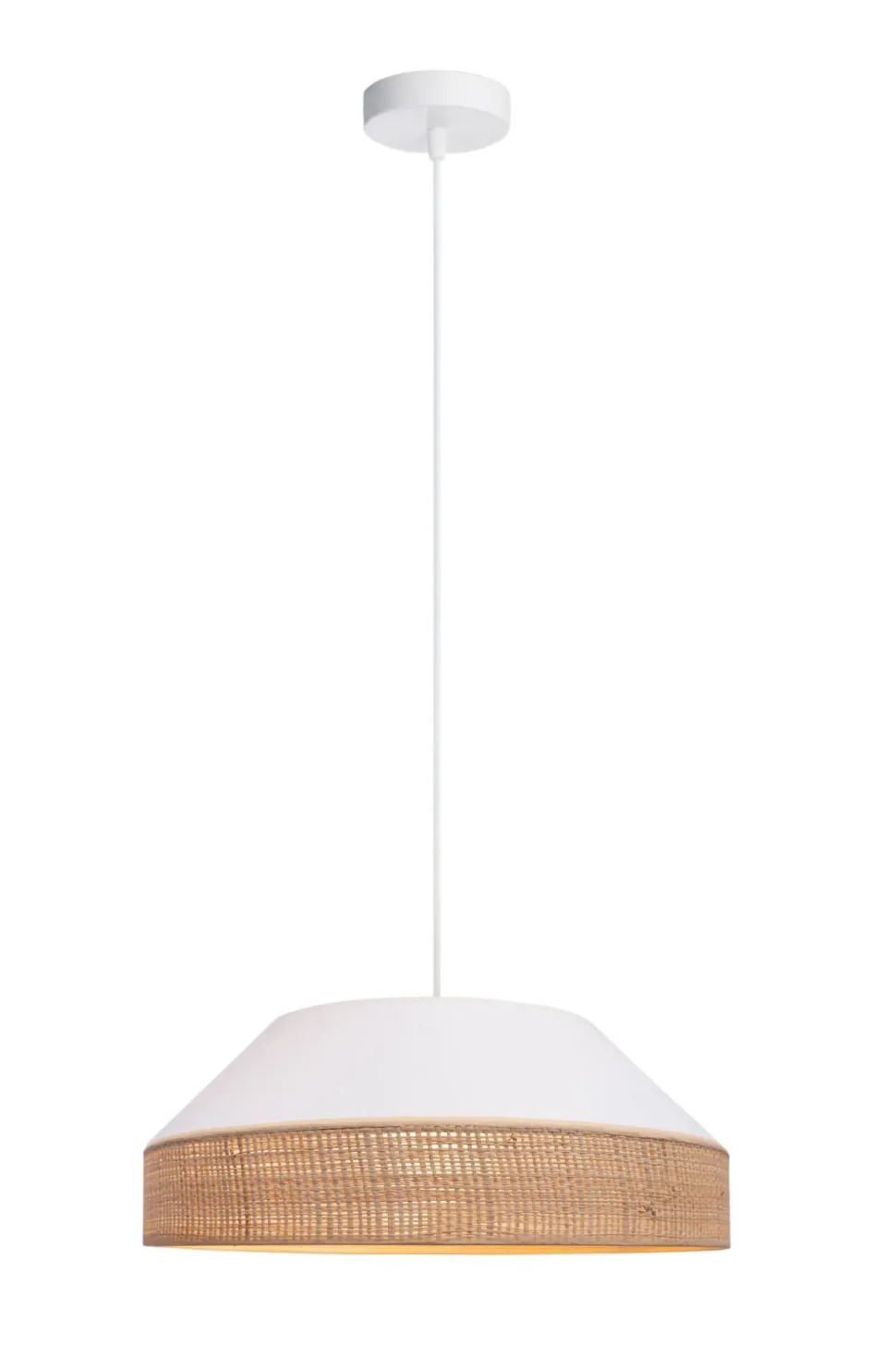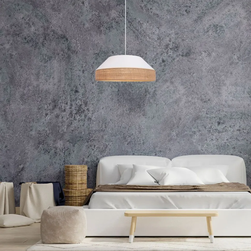 Moderne Pendelleuchte aus Stoff und Rattan