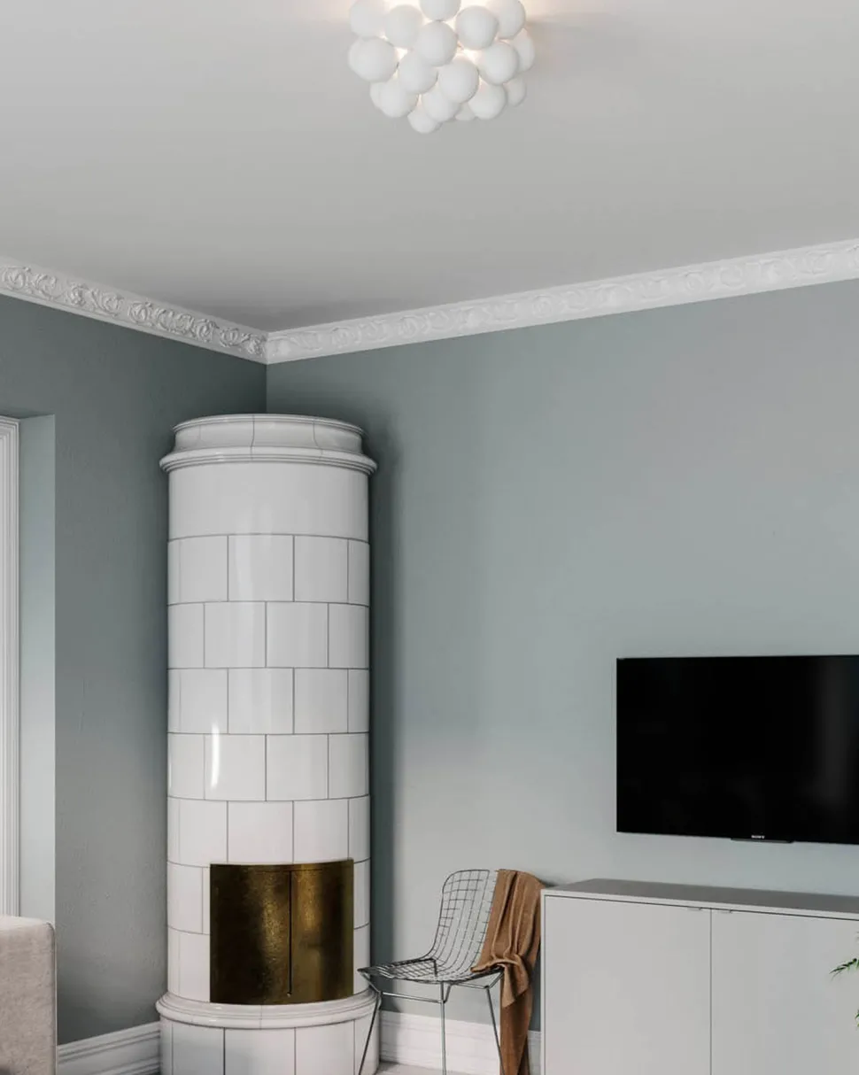 Die kunstvollen Schirme aus satiniertem Glas sorgen für einen edlen Look, der aus der Deckenleuchte einen dekorativen Blickfang macht