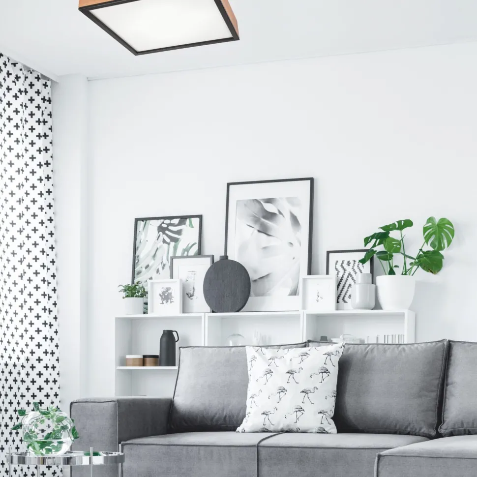 Dank ihrer geringen Höhe passt die Deckenlampe auch in Räume mit niedrigen Decken