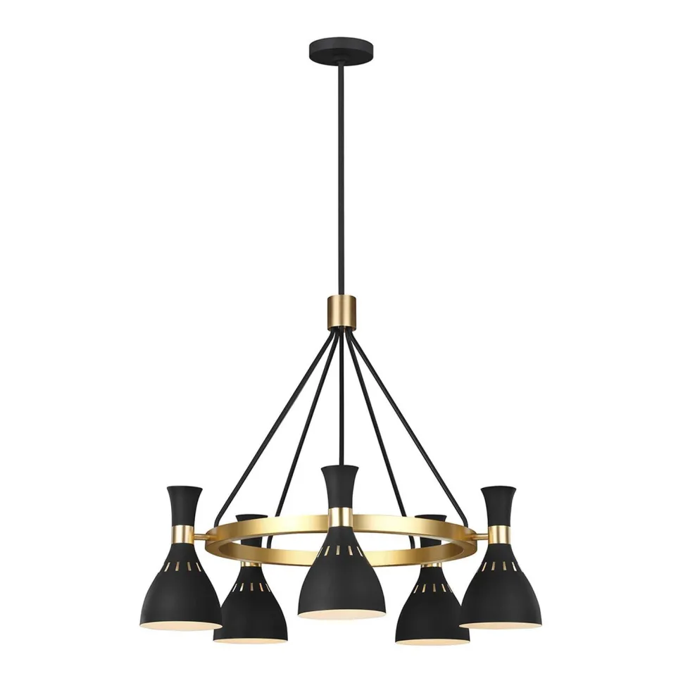 Die Kombination aus glänzendem Messing und mattem Schwarz sorgt für einen besonders stilvollen Look, was aus der Deckenlampe einen dekorativen Blickfang macht