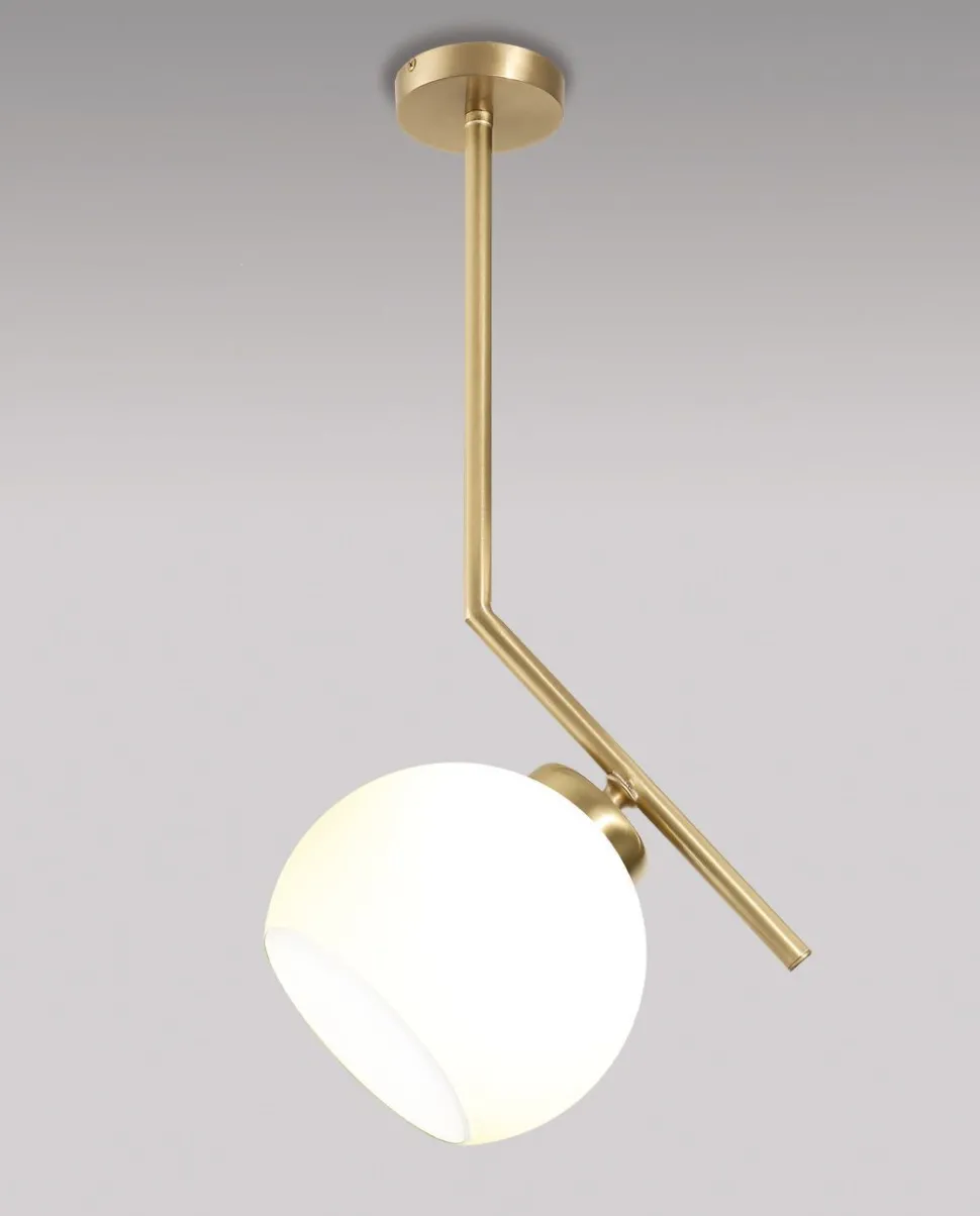 Elegante Messing Deckenleuchte mit Schirm aus satiniertem Glas
