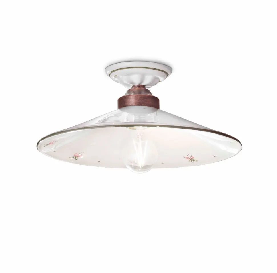 Kleine Keramik Deckenleuchte im rustikalen Landhaus Stil mit kunstvoll verziertem Lampenschirm