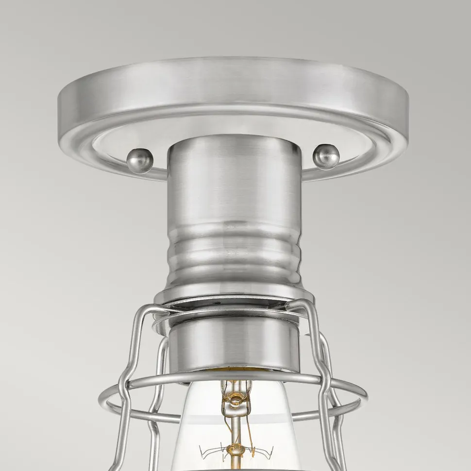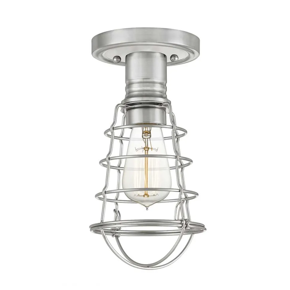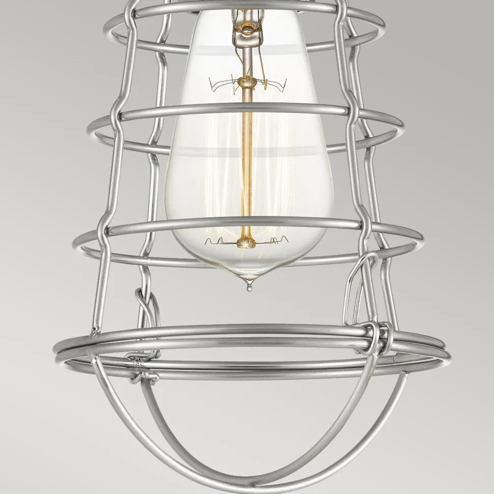 Elegante Metall Deckenlampe mit Käfig Schirm in gebürstetem Nickel