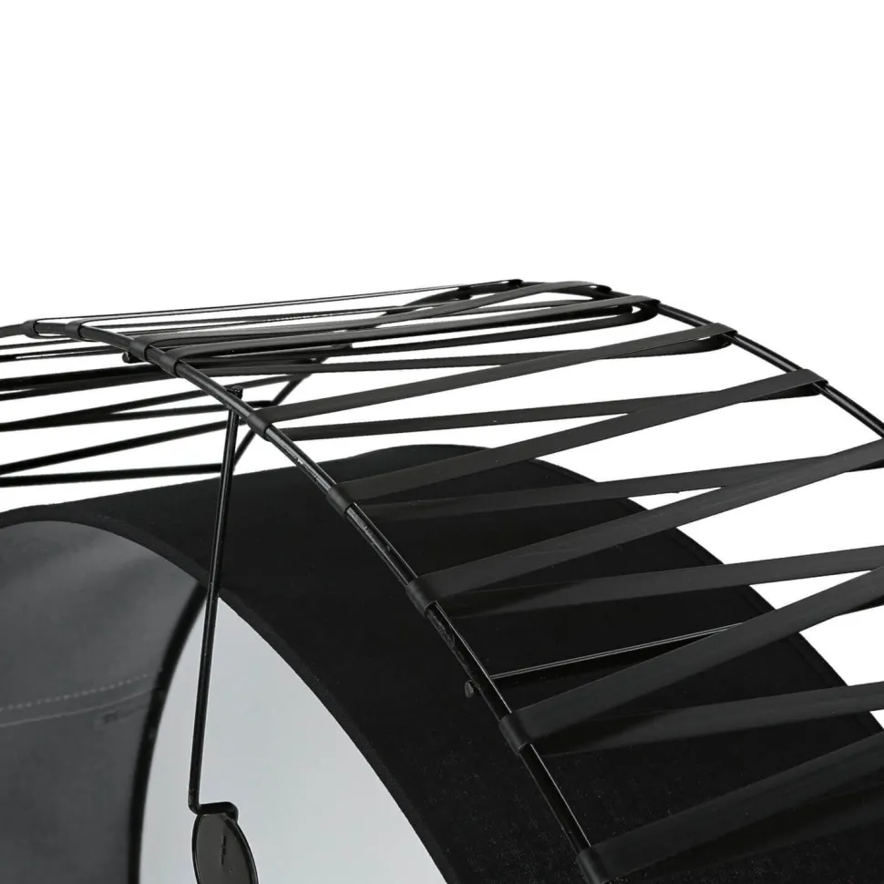 Das robuste Metallgestell wurde mit breiten Streifen aus weichem Kunststoff umwickelt, die sich frei bewegen lassen und für einen individuellen Look sorgen