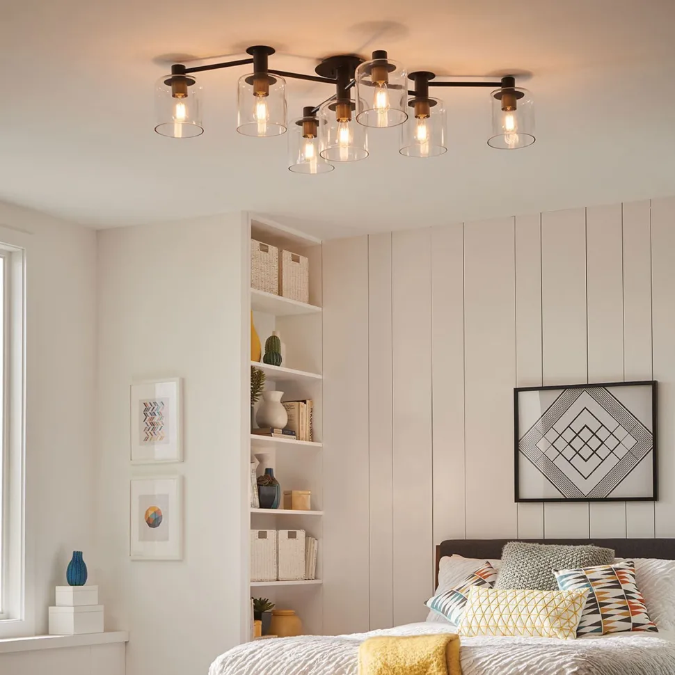 Dank ihrer geringen Höhe passt die Leuchte auch in Räume mit niedrigen Decken