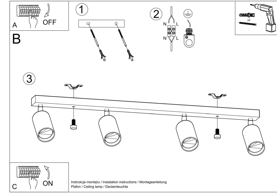 Die Deckenleuchte erlaubt dank der dreh- und schwenkbaren Schirme eine zielgerichtete Beleuchtung und passt ideal in Wohnzimmer, Küche und Flur