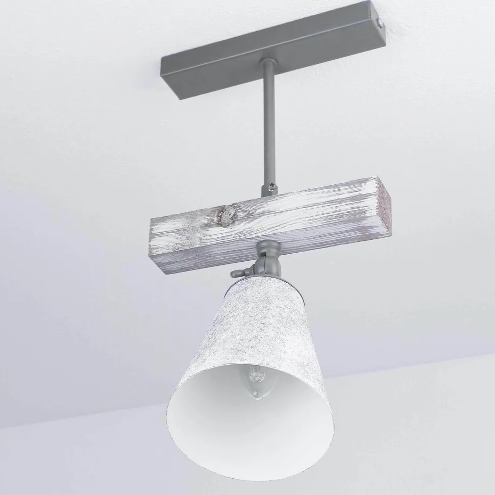 Vintage Deckenstrahler aus Metall und Holz im Shabby Chic für Wohnzimmer, Küche und Flur
