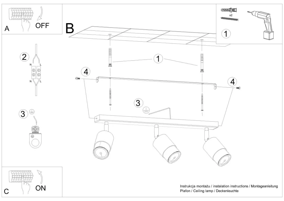 | Fassung: | 3x GU10 max. 40W |