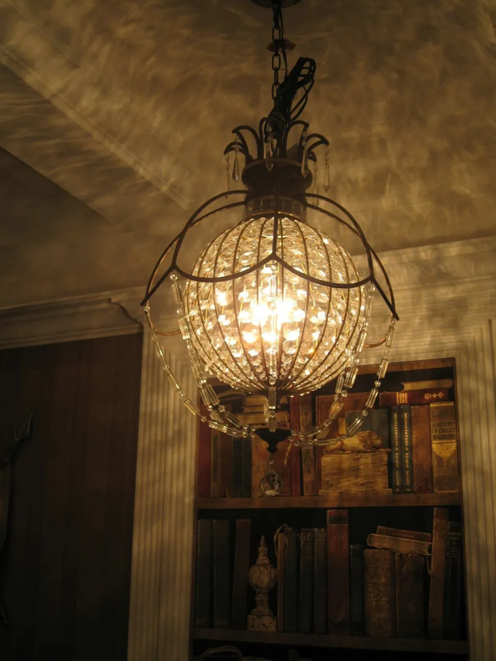 Prunkvolle Pendelleuchte mit kunstvollem Kugelschirm und edlen Verzierungen im Barock Design