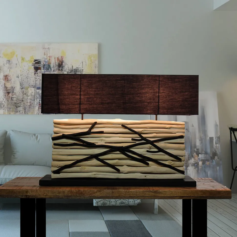Mit dieser Treibholz Tischleuchte holen Sie sich ein absolutes Kunstwerk in Ihr Wohnzimmer. Der Mix aus Stoff, Metall und Holz verleiht der Tischlampe einen vielseitigen und dekorativen Charakter, der natürliches Flair und modernes Design vereint.