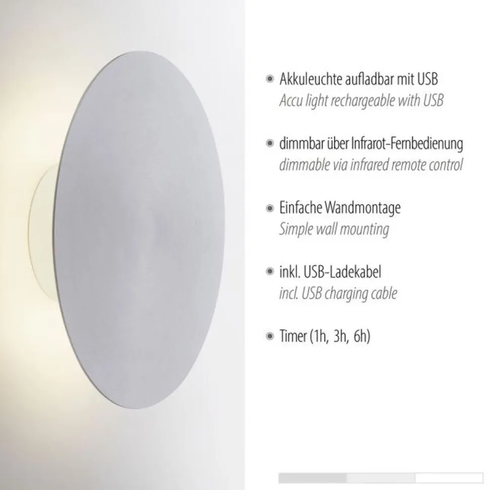 Dimmbare Lichtstufen 100% – 50% – 10% | Timerfunktion 1h 3h 6h | Infrarot-Fernbedienung | lange Laufzeit bis zu 40 Stunden | einfache Montage | USB aufladbar | kombinierbar mit anderen Leuchten | Memoryfunktion
