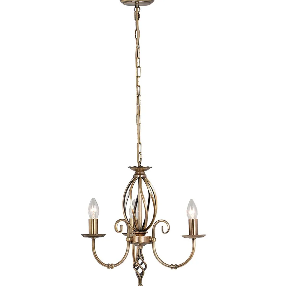 Drei kunstvoll geschwungene Arme sowie harmonisierende Zierelemente machen Pendelleuchte zu einem dekorativen Blickfang