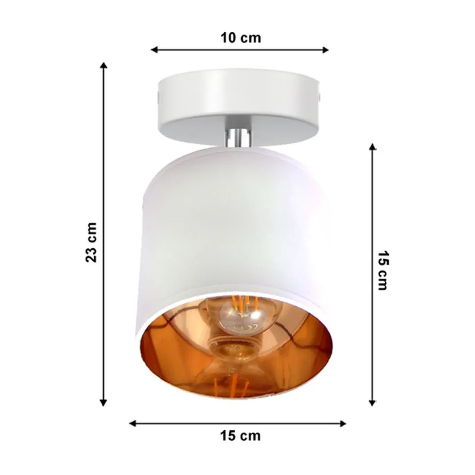 Freie Leuchtmittelwahl: Du kannst Helligkeit und Lichtfarbe mit der Wahl eines passenden Leuchtmittels individuell bestimmen | nicht inklusive Entdecke den modernen Deckenspot HAIPIS – die perfekte Kombination aus stilvollem Design und funktionaler Beleuchtung. Mit seinem eleganten Mix aus Weiß und Gold fügt sich dieser Aufbaustrahler harmonisch in jedes Wohnambiente ein. Ob im Wohnzimmer, Schlafzimmer, Flur oder Arbeitszimmer – dieser Deckenspot sorgt für eine gemütliche Lichtstimmung und setzt gezielte Akzente. Der dreh- und schwenkbare Schirm ermöglicht es dir, das Licht genau dorthin zu lenken, wo du es benötigst. Die goldene PVC-Folie auf der Innenseite des Schirms sorgt für eine blendarme und warme Ausleuchtung, die jeden Raum in einladendes Licht taucht. Mit einem Durchmesser von 150 mm und einer Höhe von 230 mm ist dieser Deckenstrahler nicht nur kompakt, sondern auch äußerst vielseitig einsetzbar. Ein weiterer Vorteil: Du kannst die Helligkeit und Lichtfarbe ganz nach deinen Wünschen gestalten, da das Leuchtmittel (1x E27 bis 60W) nicht im Lieferumfang enthalten ist. So hast du die Freiheit, die ideale Atmosphäre für jeden Anlass zu schaffen. Mit einer IP20-Klassifizierung ist der HAIPIS Deckenspot für den Innengebrauch geeignet und bietet dir die Sicherheit, die du benötigst. Ob du nach einer stilvollen Wohnzimmerlampe suchst oder einen funktionalen Deckenstrahler für den Flur benötigst – dieser Aufbaustrahler erfüllt alle Ansprüche an modernes Wohnen. Lass dich von der Kombination aus Metall und Stoff inspirieren und bringe mit der HAIPIS Leuchte Gold Eleganz in dein Zuhause. Fazit: Der HAIPIS Deckenspot ist die ideale Wahl für alle, die Wert auf Qualität, Design und individuelle Lichtgestaltung legen. Hol dir diesen modernen Deckenstrahler und erlebe, wie er dein Zuhause in ein stilvolles Licht taucht.
