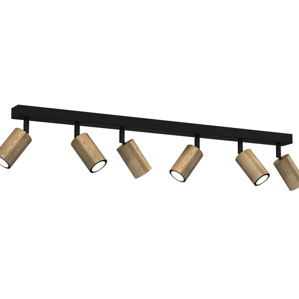 Natürlicher Deckenstrahler aus lackiertem Stahl und Holz