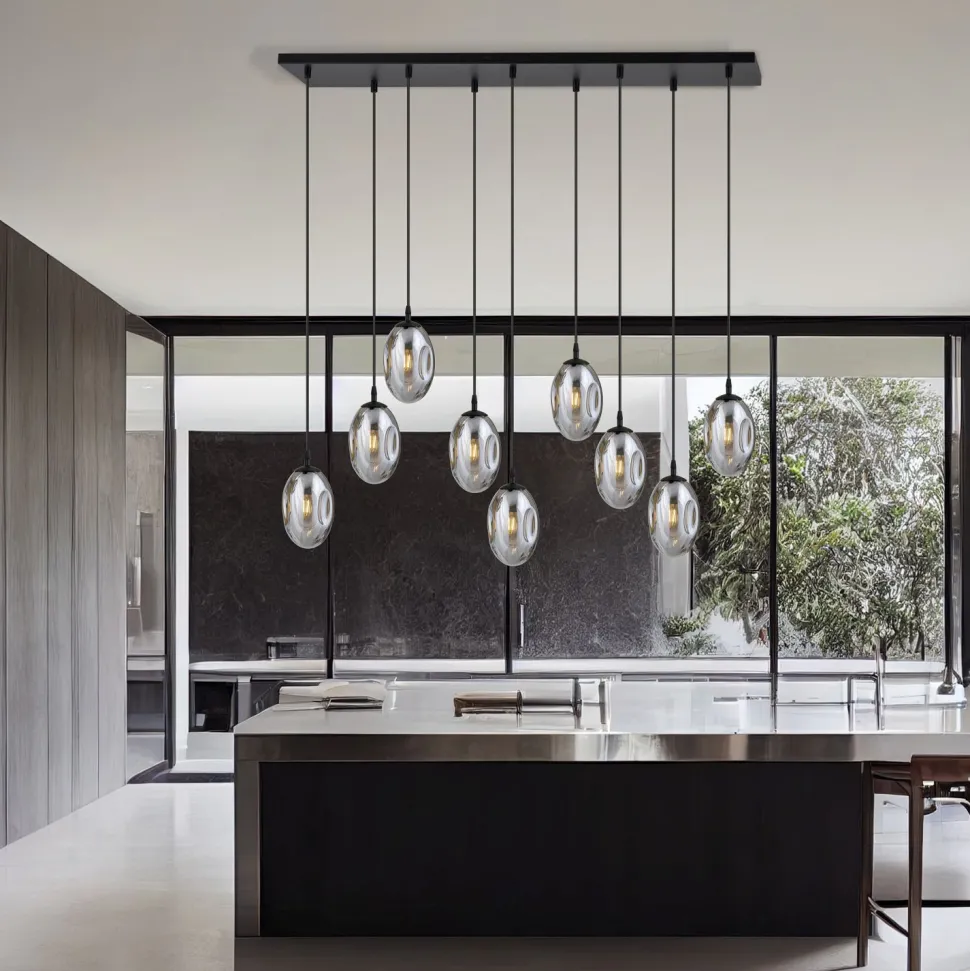 Dekorative Pendelleuchte mit extravagantem Rauchglas Lampenschirm