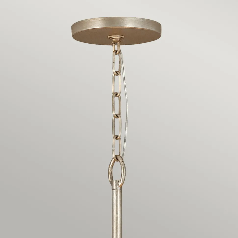 Der trichterförmige Schirm besticht durch seine Stufen, abwechselnd aus Kristall und Metall, was für ein außergewöhnliches Lichtspiel sorgt