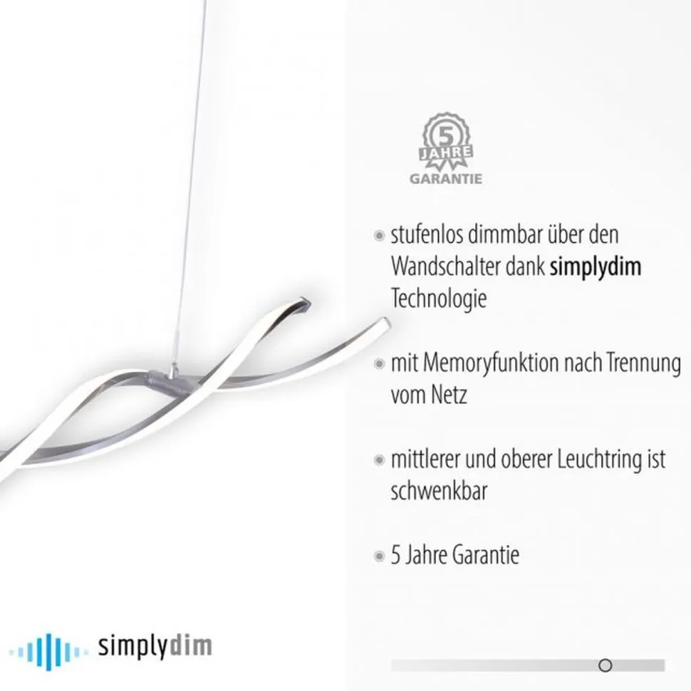 Das geschwungende, längliche Design der Hängelampe fügt sich in jedes moderne Wohnambiente ideal ein und wird zum Blickfang über dem Esstisch