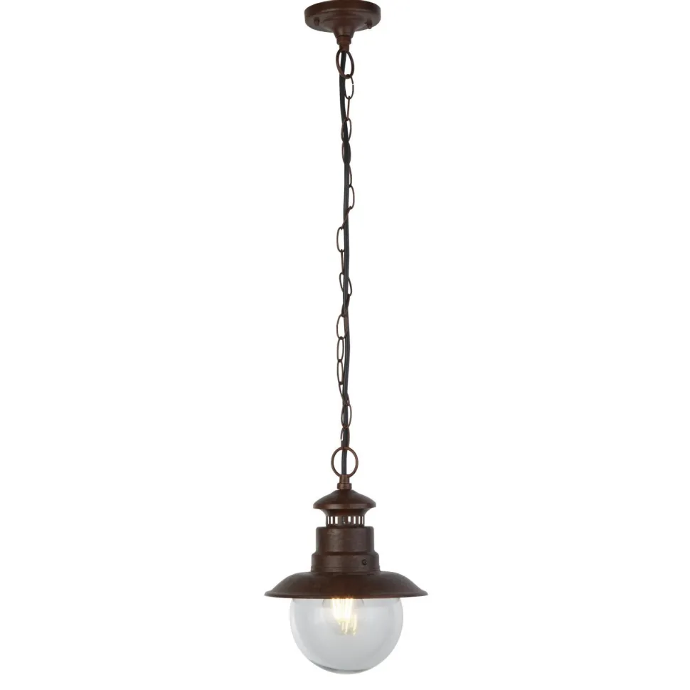 Das nautische Vintage Design erinnert an eine antike Hafenlaterne und wird durch die rostbraune Farbe weiter betont – ein dekorativer Blickfang für Haus, Hof und Garten