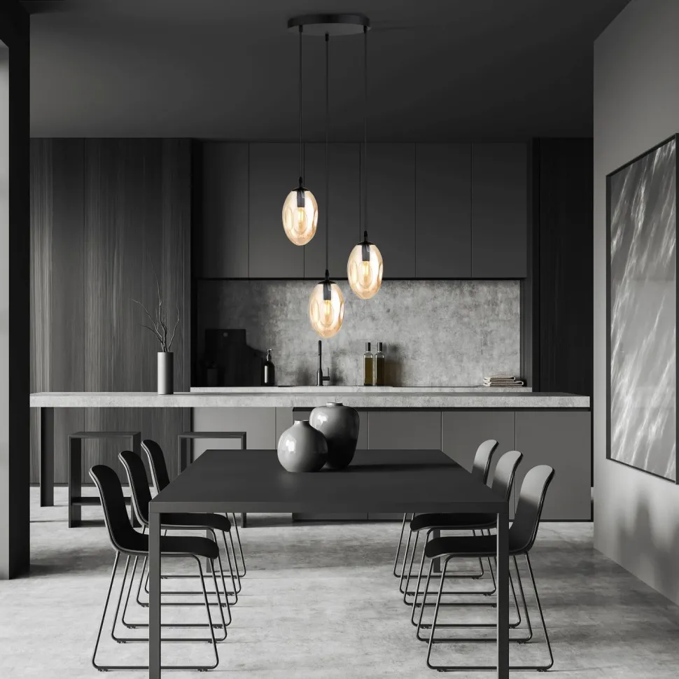 Dekorative Pendelleuchte mit extravagantem Rauchglas Lampenschirm