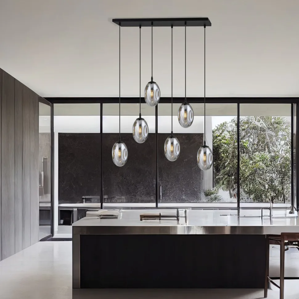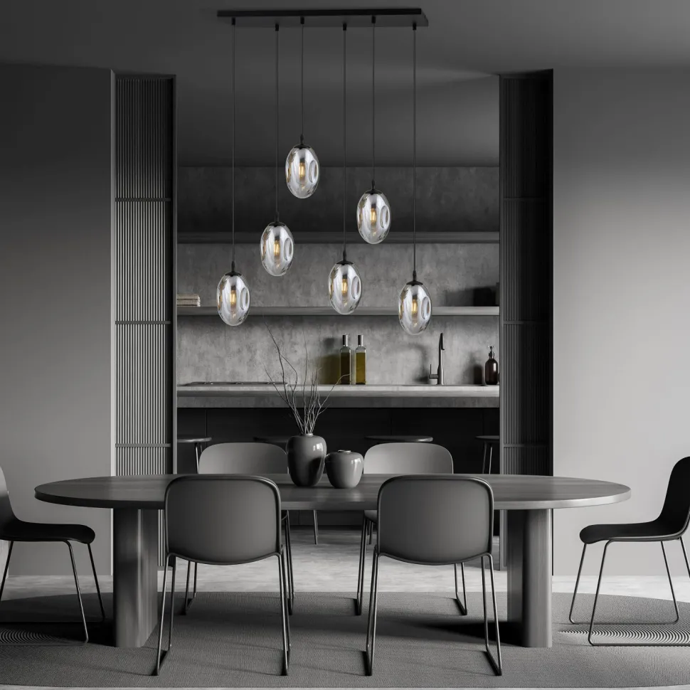 Dekorative Pendelleuchte mit extravagantem Rauchglas Lampenschirm