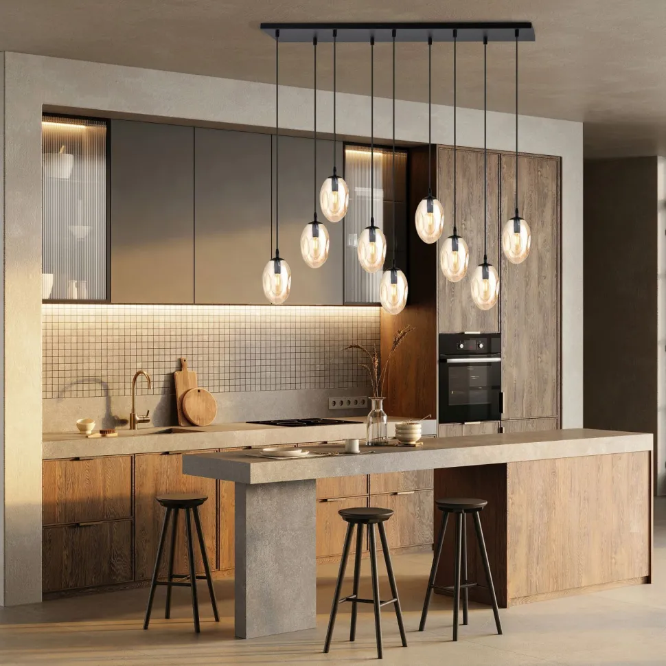 Höhenverstellbar: Die Kabel lassen sich im Baldachin verstellen – perfekt über dem Esstisch