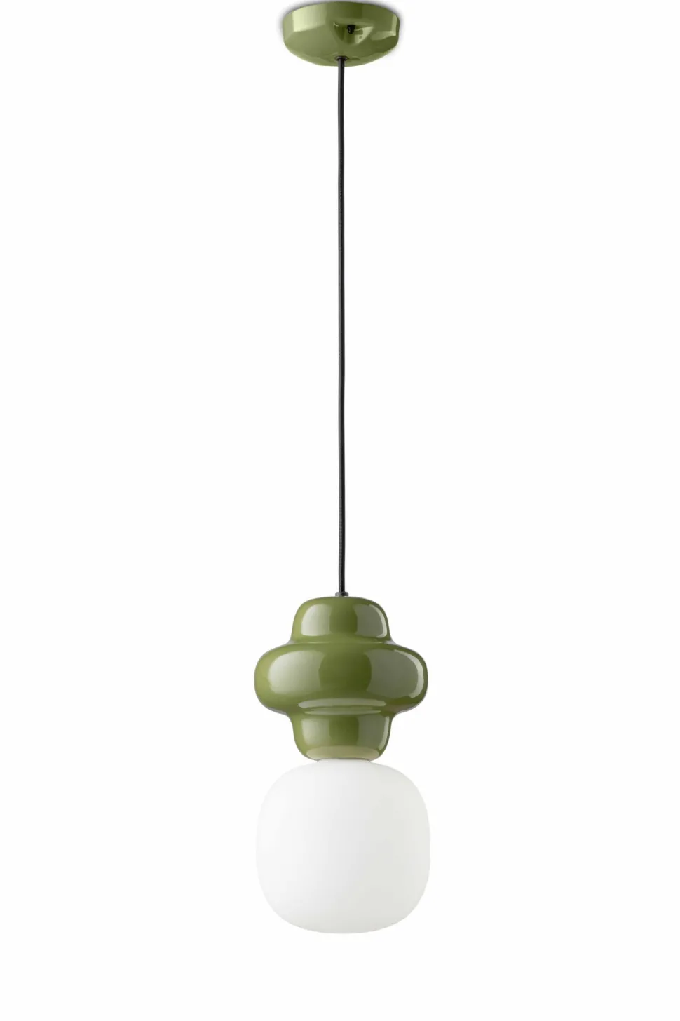 Dekorative Pendelleuchte aus Keramik und Glas im Retro Design