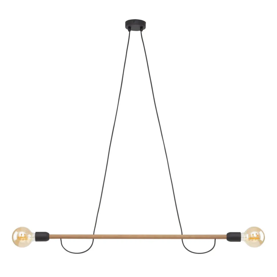 Retro Pendelleuchte aus Holz und Metall in Walnuss und Schwarz