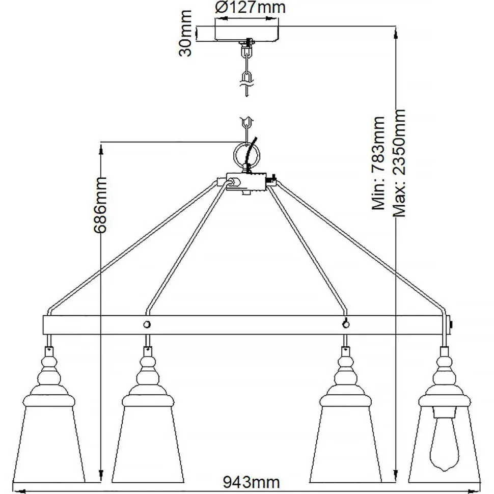 | Maße: | Breite: 943 mm | Hängetiefe: 783-2350 mm | Länge: 943 mm | Durchmesser: 943 mm | Höhe Schirm: 686 mm |